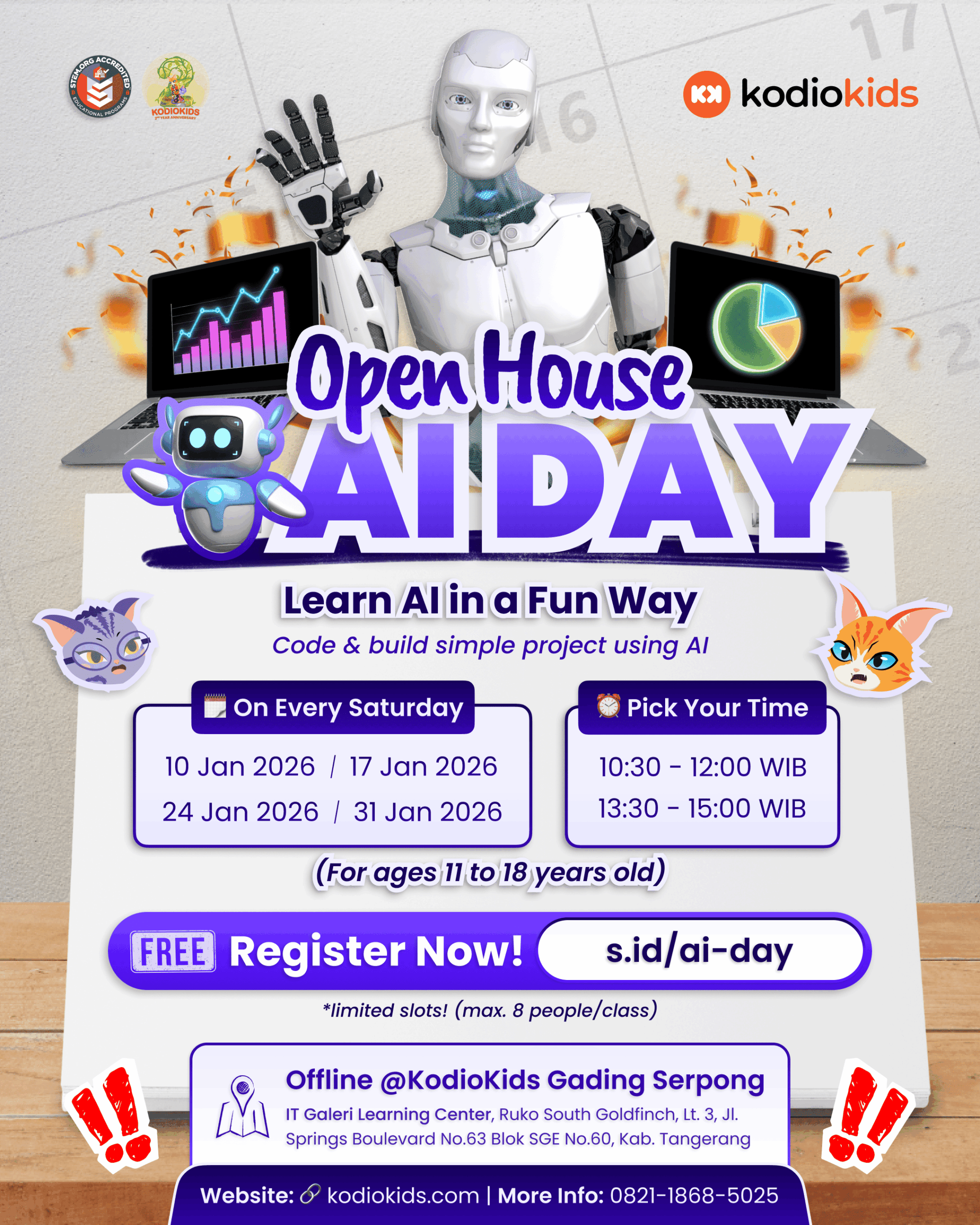 Daftarkan si kecil untuk ikutan Open House AI Day di Kodiokids Gading Serpong!